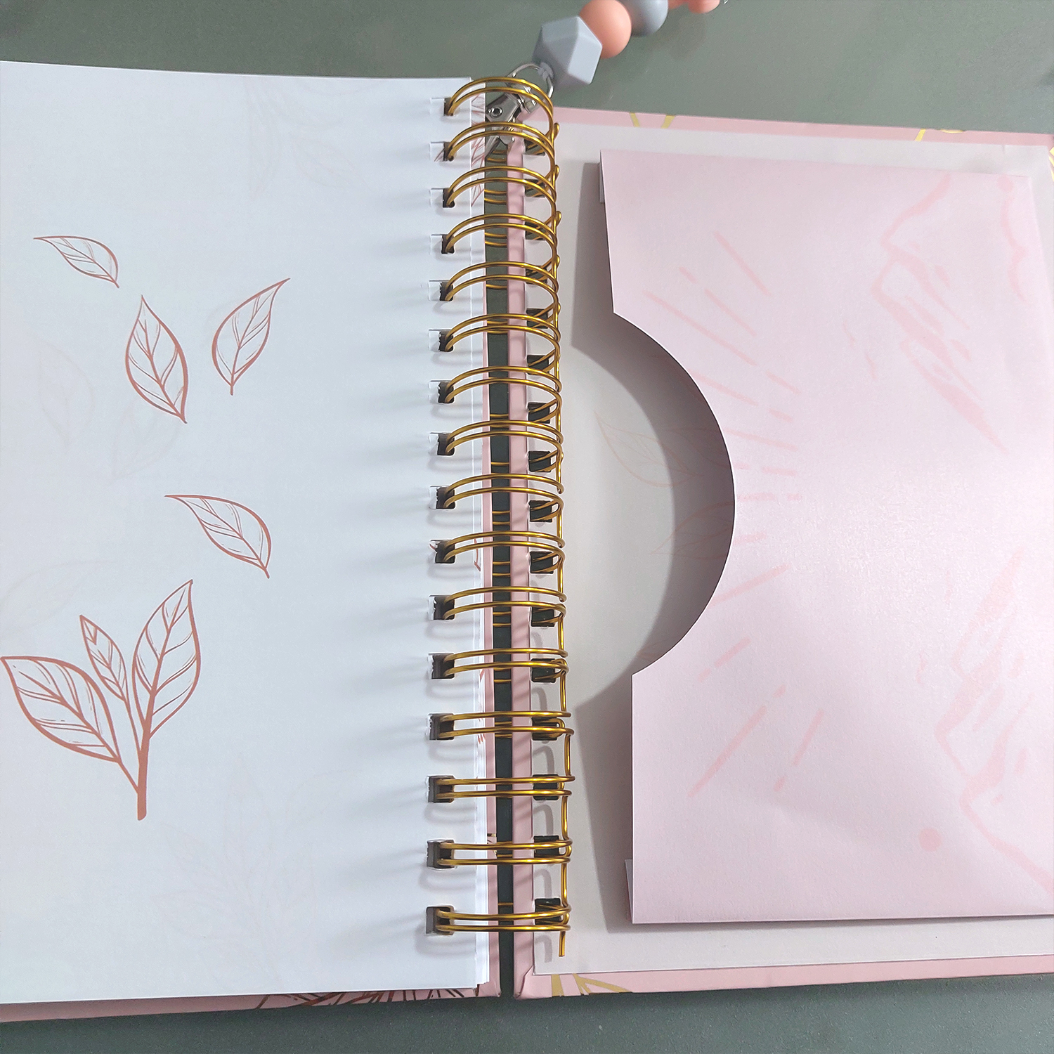 Portada y Contraportada detalles en foil sectorizado, calendario al año, agenda semanal diaria personalizadas con temática, 10 hojas de notas, sobre carpeta en la contratapa, hoja stickers y cinta elástica (verificar color según stock)