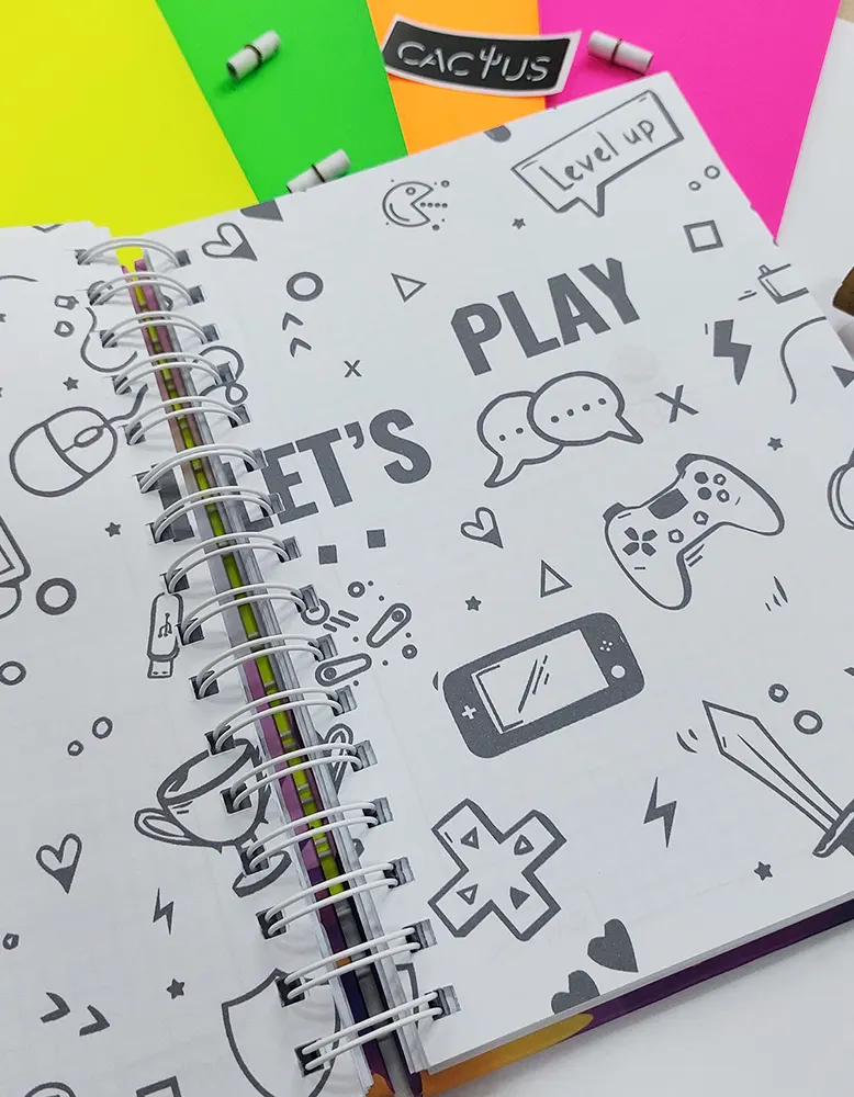 Cuaderno tamaño A5 ‘Astronauta’ espiral doble anillo completo (verificar color según stock), pasta dura laminado mate de 100 hojas tipo journal personalizadas con temática, calendario al año, hoja sobre al inicio, hoja stickers, hojas separadoras y cinta elástica (verificar color según stock)