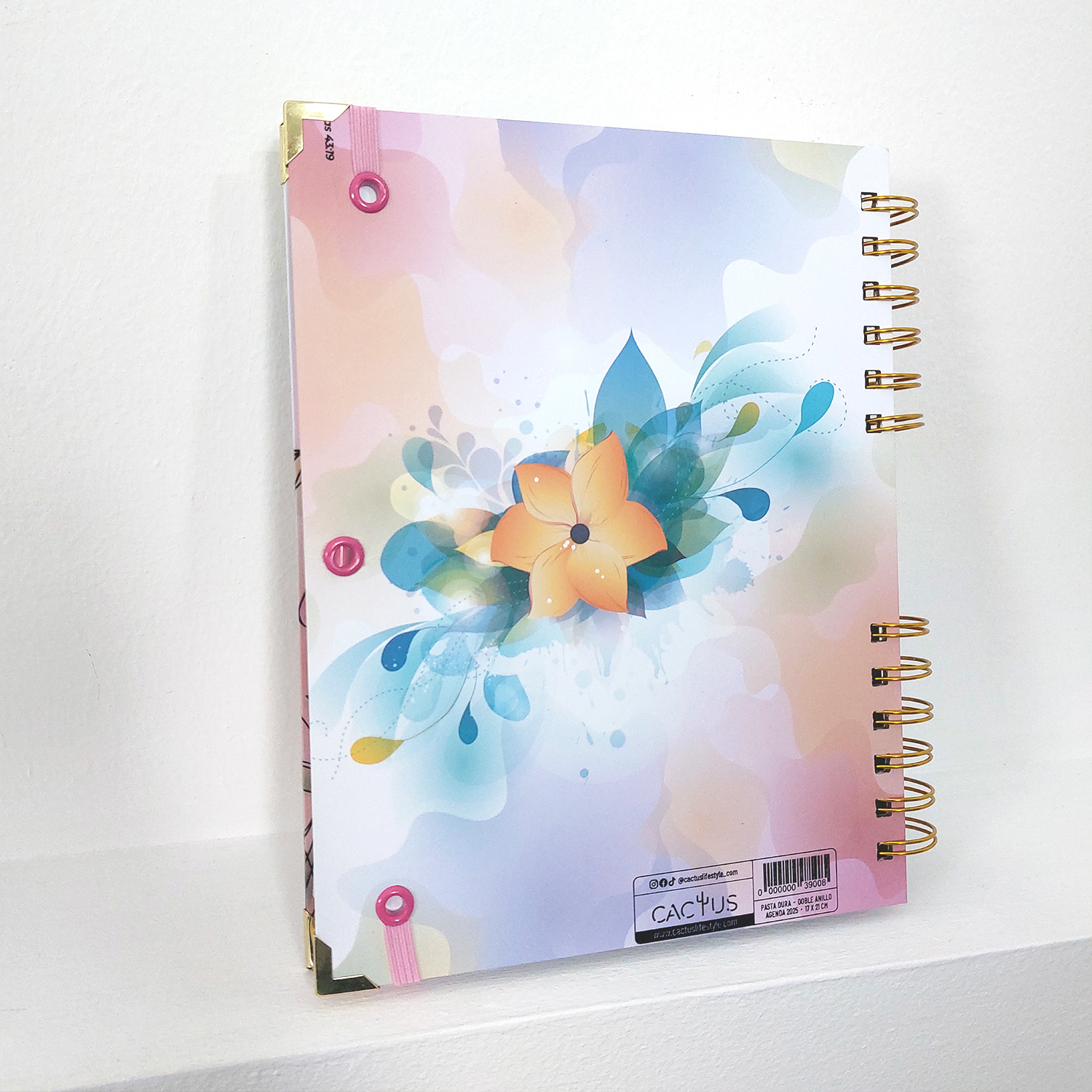 Planner Agenda Cristiana tamaño A5 ‘Nombre Personalizado’ espiral doble anillo sectorizado (verificar color según stock), pasta dura laminado mate con detalle de bordes metálicos.
